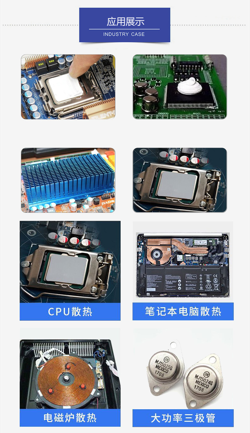導(dǎo)熱硅脂是一種是以特種硅油作基礎(chǔ)油,以新型高導(dǎo)熱陶瓷粉體為填充物,配以多種功能添加劑,經(jīng)特殊的工藝加工而成的白色或灰色的膏狀物。本產(chǎn)品具備極佳的導(dǎo)熱性、電...